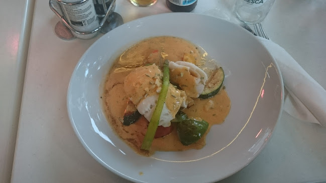 Maten? Ja, det är lite av en blandad kompott. Några säger att den är helt okej, medan andra tycker att den behöver ett rejält uppsving. En del klagar på att grönsakerna är sönderkokta, medan andra vill hylla den otroligt goda röding de fick. Känner du pressen att välja rätt?