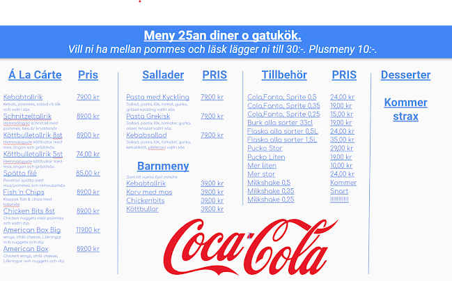 Maten? Jo, den verkar variera. Ibland får man en kebabtallrik som, hör och häpna, kan vara okej, men fries kanske inte alltid är lika frasiga som man hoppas. Grillad kycklingpasta låter ju mumsigt, men… vad händer när den är iskall? Inte direkt det man vill ha.