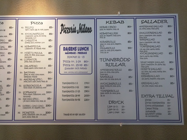 Öppettider för Pizzeria Milano