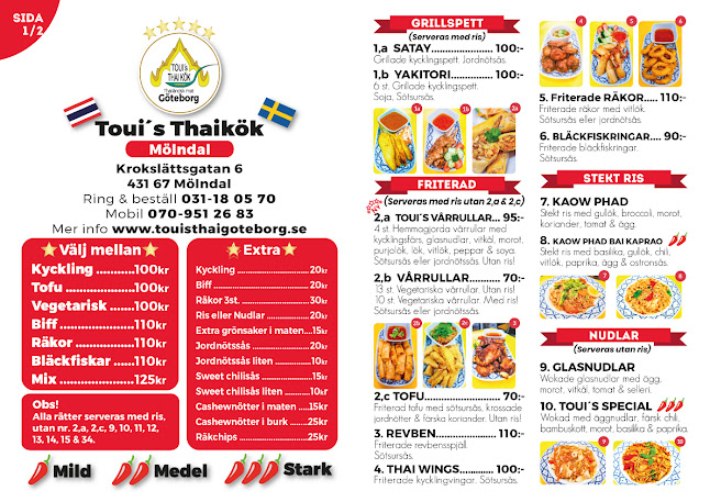 Okej, låt mig berätta om Toui’s Thai Kök i Mölndal, en liten thailändsk juvel som jag verkligen tycker är värd att besöka. Ligger på Krokslättsgatan 6 och har det där mysiga, familjära sköna vibbar. Det är alltid bra att veta att man kan parkera utan krångel där runtomkring.